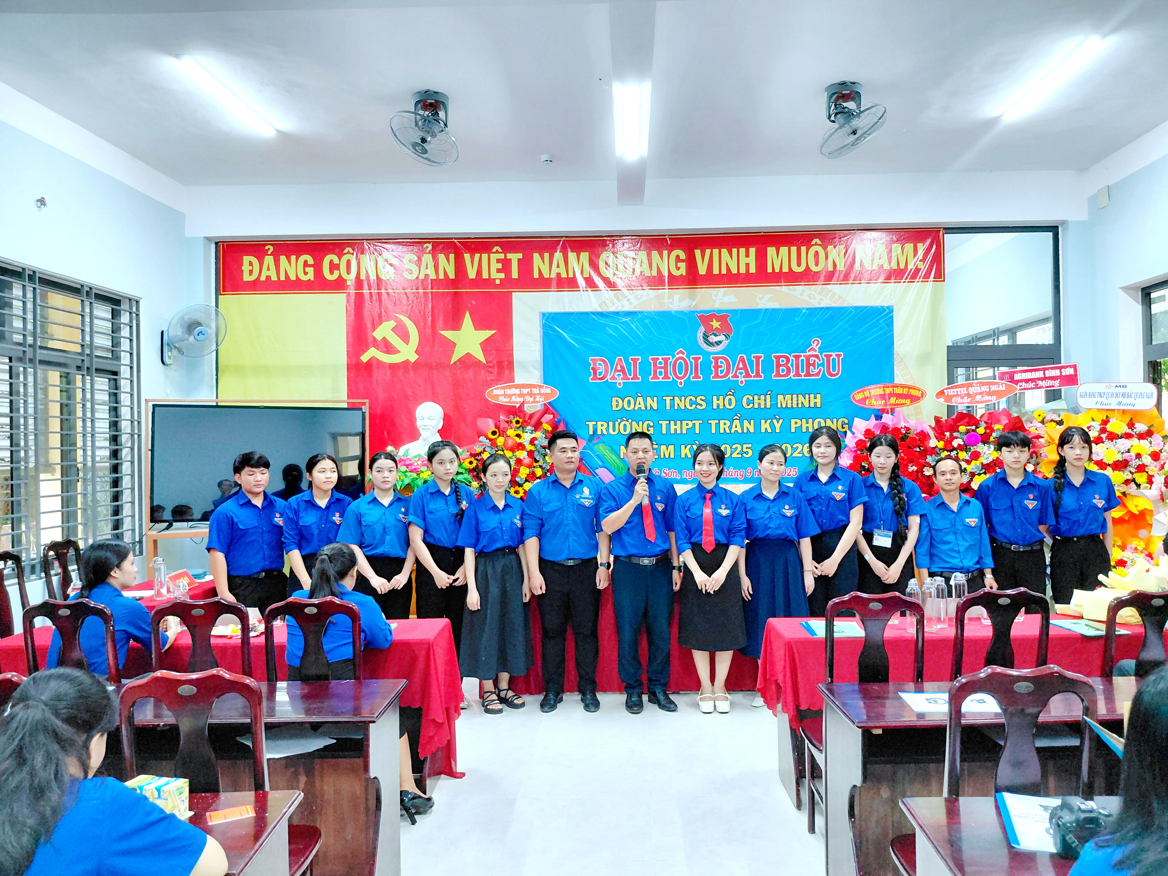 Ngày 20/9/2025, Đại hội Đoàn TNCS Hồ Chí Minh trường THPT Trần Kỳ Phong đã diễn ra thành công tốt đẹp tại hội trường nhà trường. Đại hội vinh dự đón tiếp đồng chí Nguyễn Thị Hồng Sen – Đảng ủy viên, Phó Chủ tịch Mặt trận Tổ Quốc, Bí thư Đoàn xã Bình Sơn; thầy Nguyễn Phiêu – Bí thư Đảng bộ, Hiệu trưởng nhà trường, cùng 66 đoàn viên ưu tú đại diện cho hơn 1.300 đoàn viên thanh niên (ĐVTN) trong toàn trường.