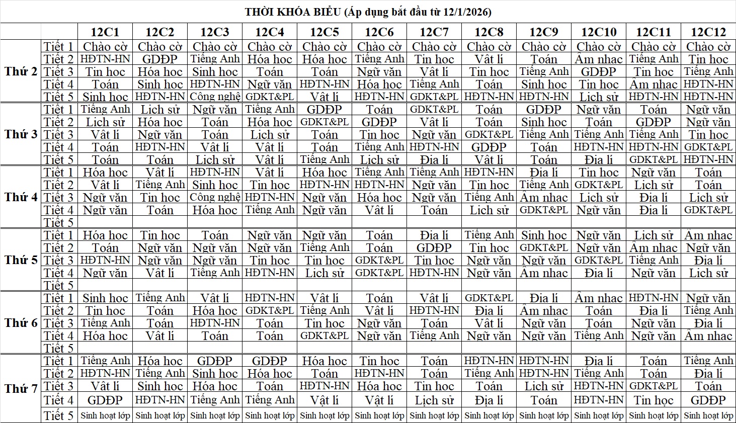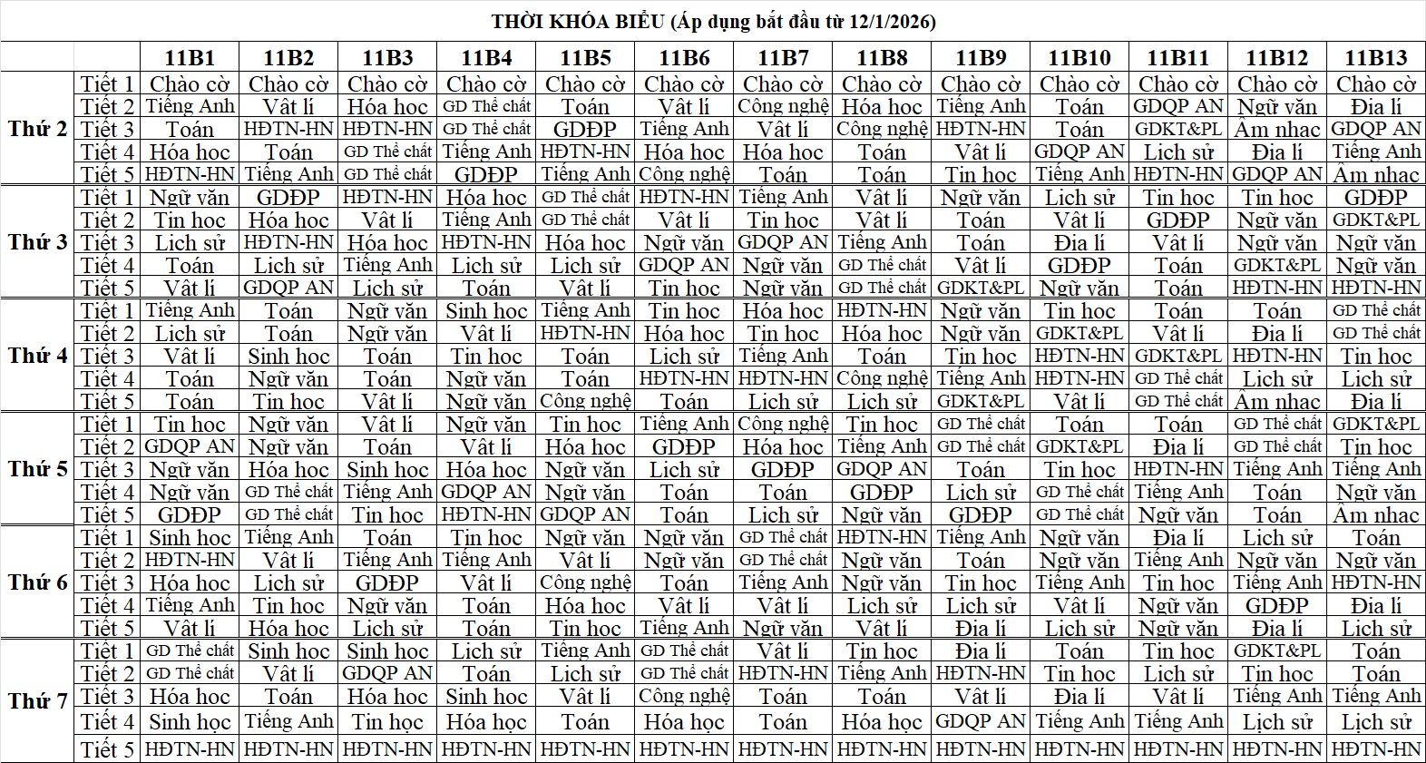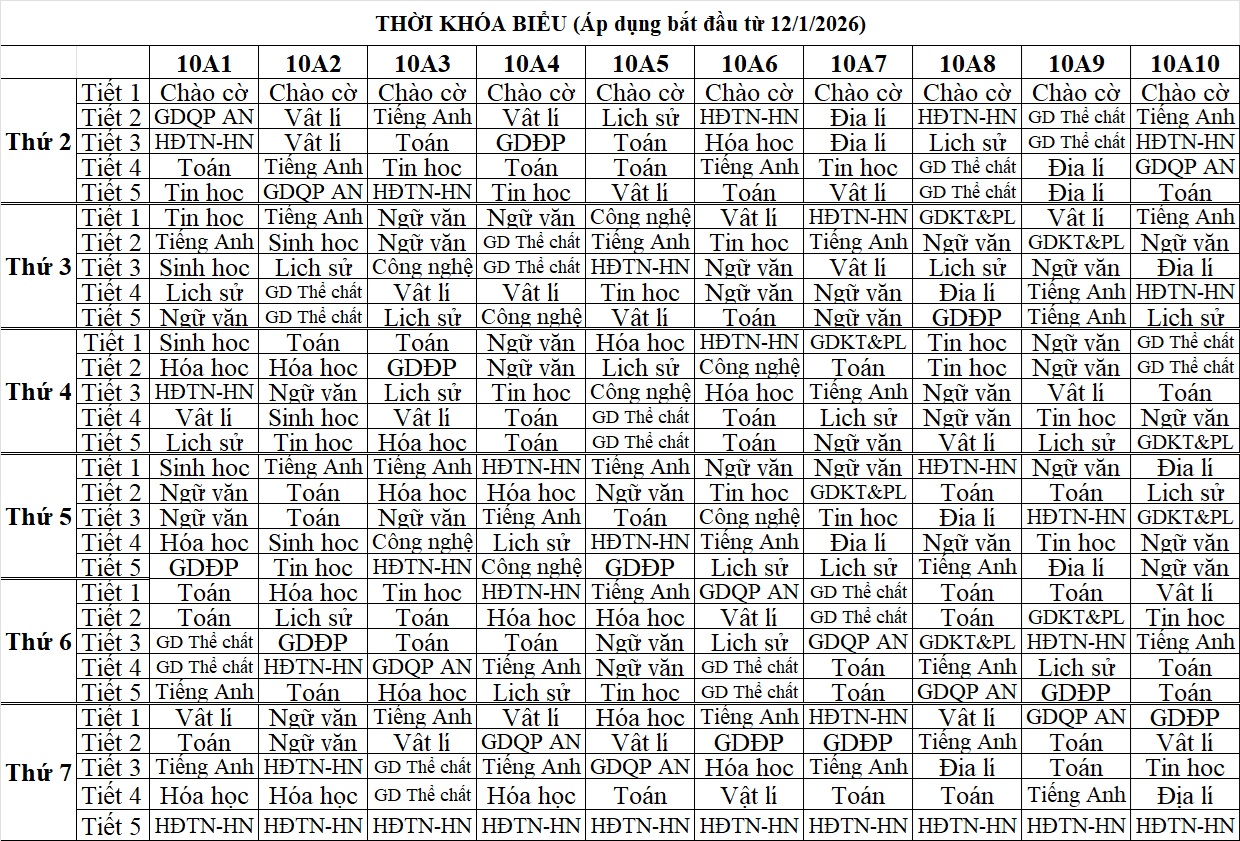 Thời khóa biểu HK2 Lần 1