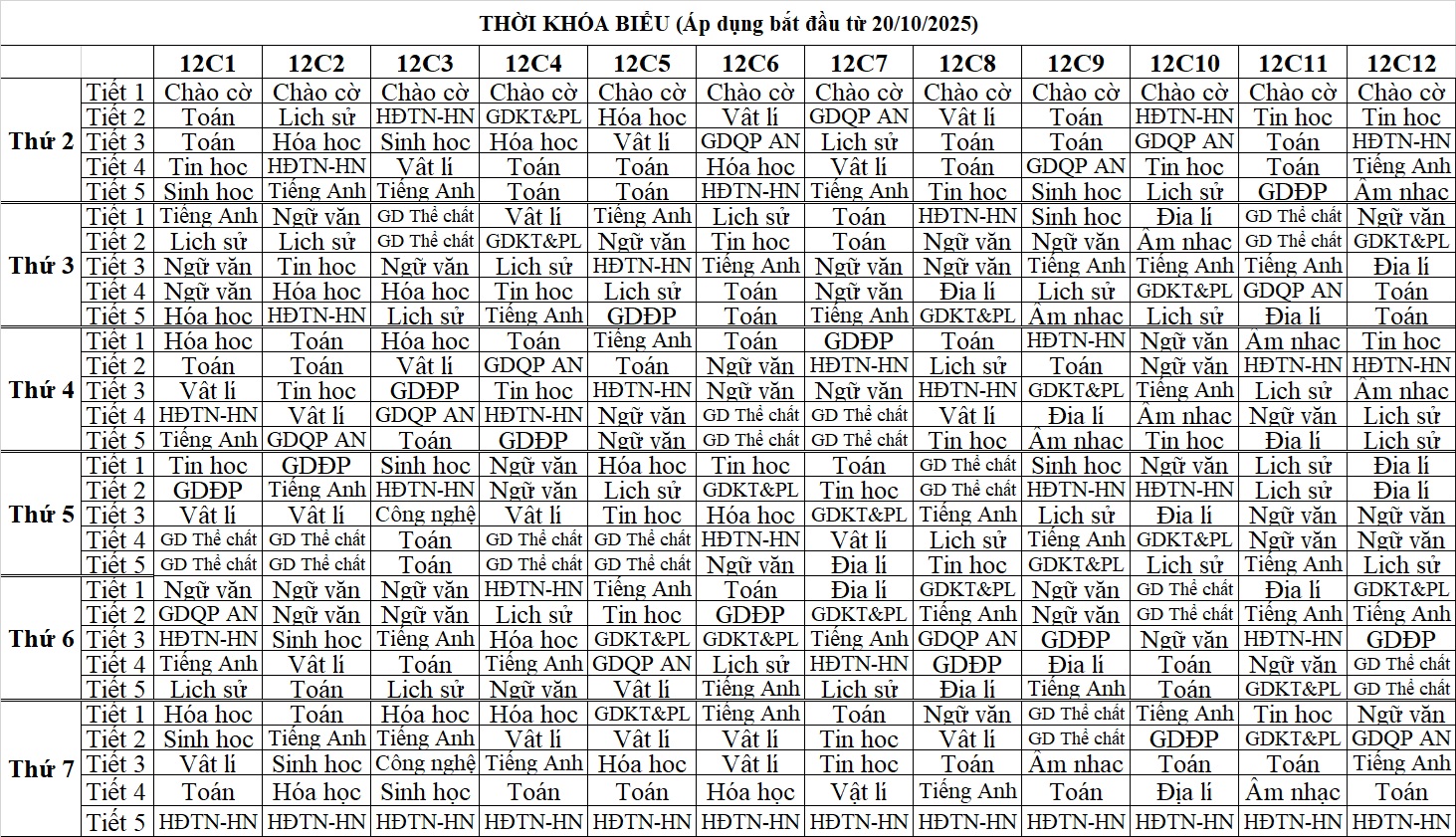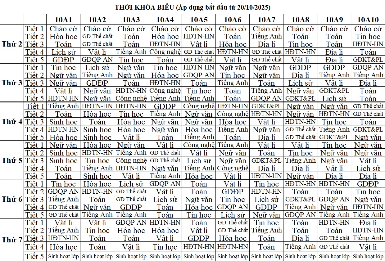 Thời khóa biểu Lần 4