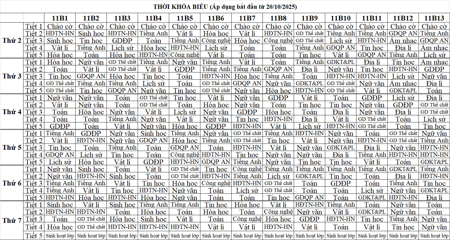 Thời khóa biểu lần 3