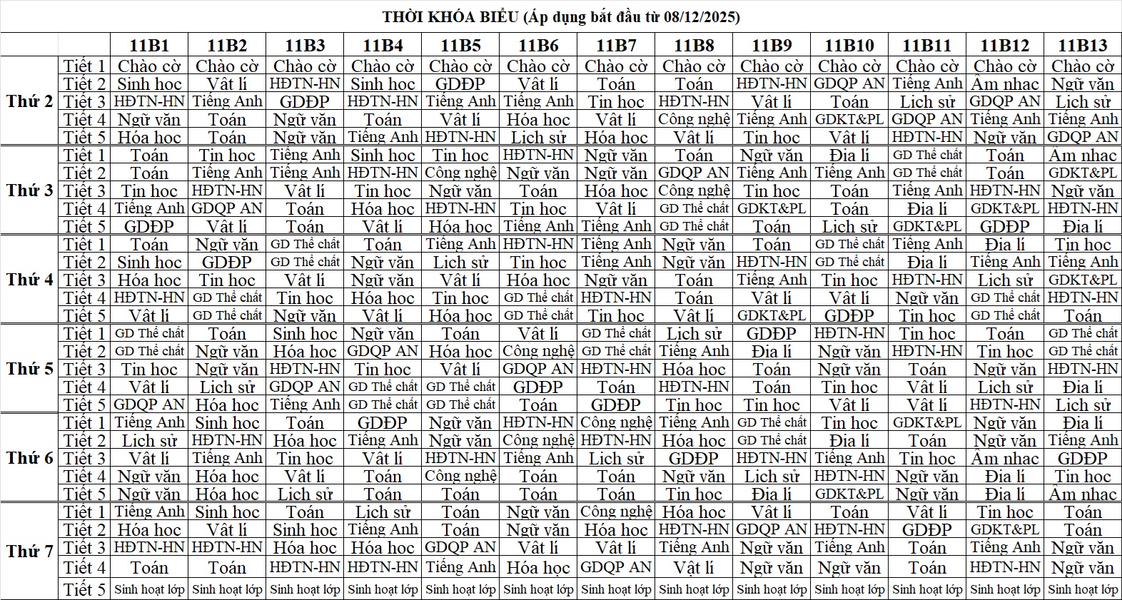 • Thời khóa biểu lần 5 (29/11/2025)